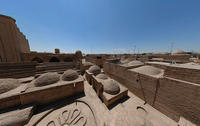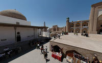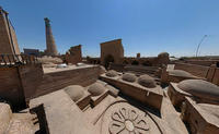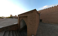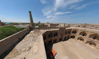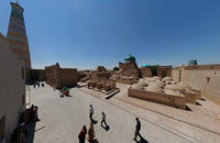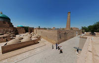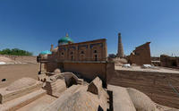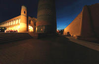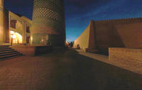 | Itchan Kala is the walled inner town of the city of Khiva, Uzbekistan. Since 1990, it has been protected as the World Heritage Site. The old town retains more than 50 historic monuments and 250 old houses, dating primarily from the 18th or 19th centuries. Djuma Mosque, for instance, was established in the 10th century and rebuilt in 1788-89, although its celebrated hypostyle hall still retains 112 columns taken from ancient structures. The most spectacular features of Itchan Kala are its crenellated brick walls and four gates at each side of the rectangular fortress. Although the foundations are believed to have been laid in the 10th century, present-day 10-meters-high walls were erected mostly in the late 17th century and later repaired. --Wikipedia. Text is available under the Creative Commons Attribution-ShareAlike License. For 360 degree imaging of this site, click here. | ||